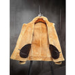 Stay warm and stylish with this Classic Shearling Leather Jacket, crafted for both comfort and durability. Made from high-quality genuine leather, this jacket features a rich dark brown exterior complemented by a soft, golden shearling lining that provides exceptional insulation against the cold.