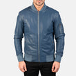 Bomia Ma-1 Blue Leather Bomber Jacket