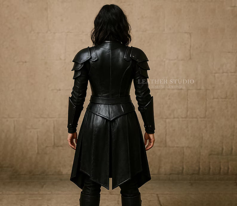 Integrated Shoulder Armor Pads: Robust, sculpted leather shoulder pads are seamlessly integrated, adding an imposing, battle-ready aesthetic and enhanced character detail.