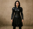 Prepare for battle or grand feasts with our commanding, custom-made black leather medieval armor vest for women from Leather Studio. This formidable piece is meticulously crafted from premium, robust black leather, designed to evoke the strength and style of ancient female warriors. Featuring secure buckle closures, an adjustable waist belt, imposing shoulder armor pads, and striking stud embellishments, it's perfect for historical reenactments, epic cosplay events, LARP, or making an unforgettable statement at festivals. Command your destiny!