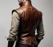 Custom Brown Leather Cosplay Vest for Men, Men's Designer Brown