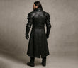 The coat is designed with durability and versatility in mind. The armor-style shoulders and structured silhouette give it a commanding warrior presence, while the soft inner lining ensures comfort for extended wear. Adjustable straps and custom sizing options allow for a personalized fit, making this coat not just outerwear, but a functional piece of wearable art.