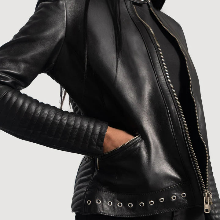 Haley Ray Black Leather Biker Jacket