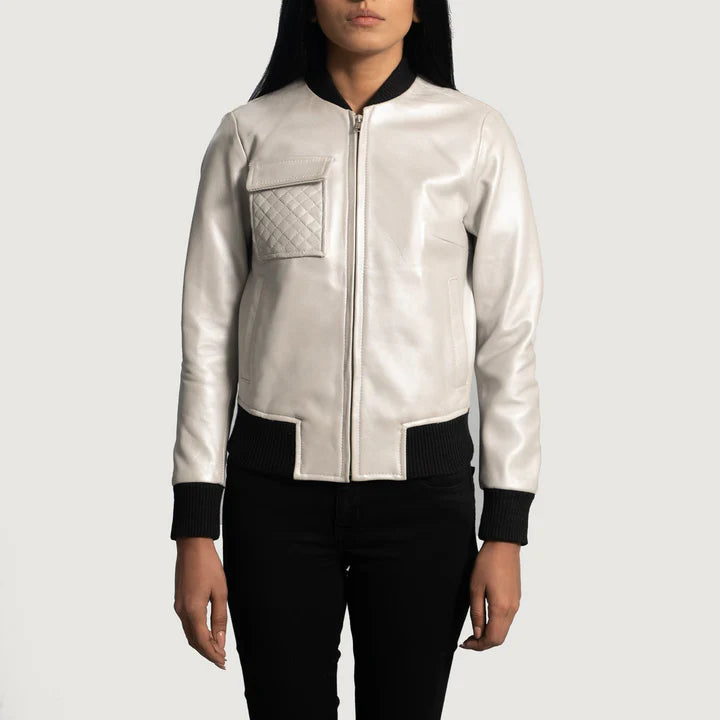 Lana Silver Leather Bomber Jacket