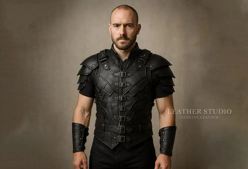 Unleash your inner adventurer with this Medieval Steampunk Leather Vest for Men. Designed with a perfect blend of fantasy and rugged style, this vest features adjustable shoulder and wrist guards for a customizable fit and authentic look. Crafted from premium faux/real leather (as per your product), it is ideal for cosplay, LARP events, fantasy conventions, stage performances, or even as a bold fashion statement. The detailed stitching and durable construction ensure comfort and longevity while adding a distinctive medieval and steampunk edge to your outfit.