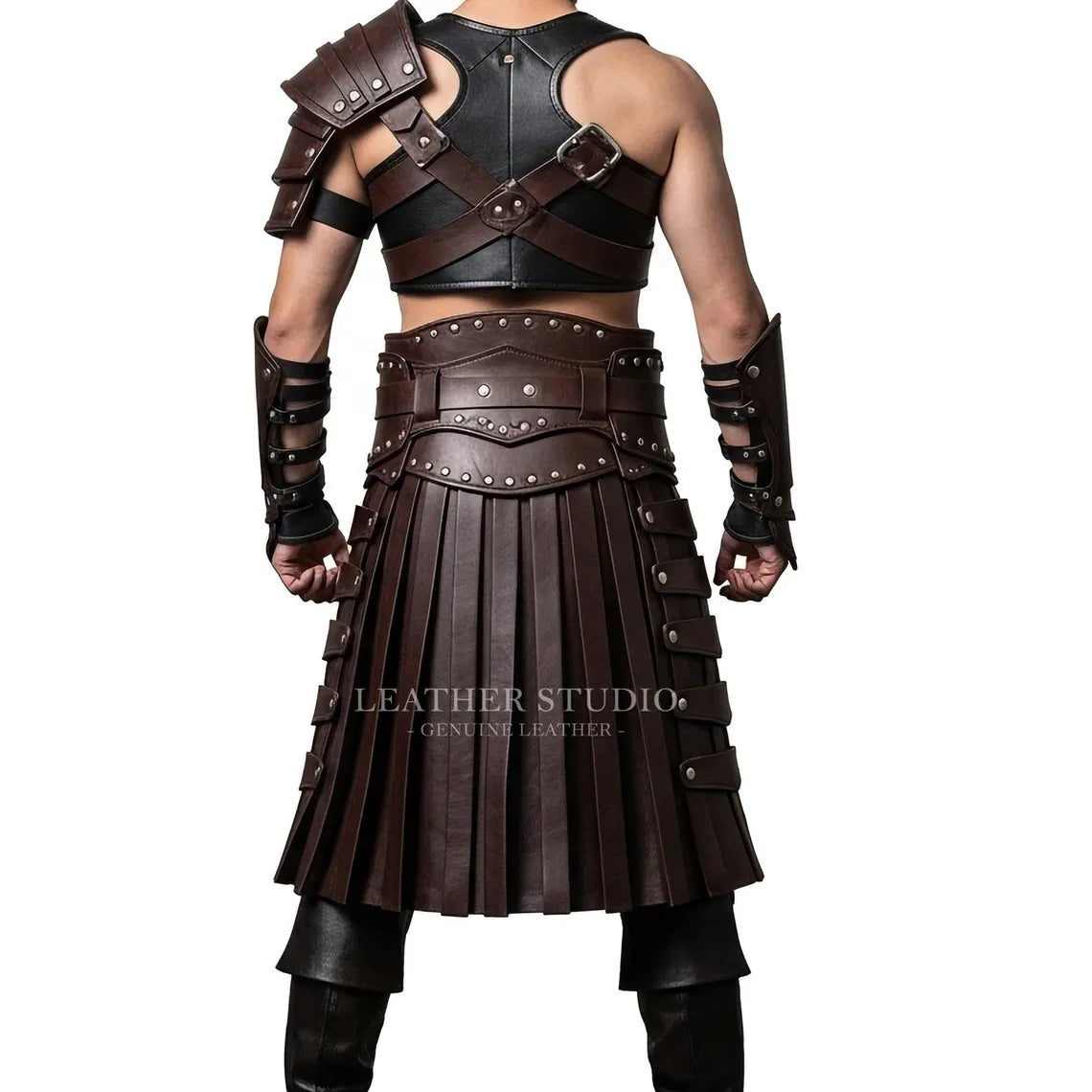 Men’s Brown Leather Kilt Armor Set | Gladiator Warrior Barbarian Outfit