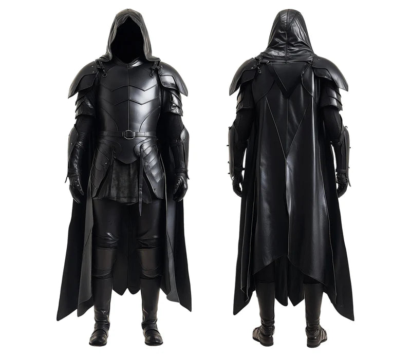 This legendary set is more than just armor and cloak; it’s a symbol of power, transformation, and survival. 🖤 The black leather cloak flows like the midnight sky, and the handcrafted armor tells stories of countless battles and silent victories. Together, they create the look of a warrior reborn from flame and shadow.