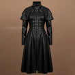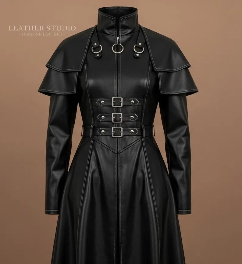 Welcome to leather studio! Make a powerful and dramatic statement with our stunning genuine black leather gothic trench coat. Meticulously handcrafted from premium, authentic leather, this jacket is designed for those who command attention. Its intricate design features a high-neck collar, a full-length front zipper, and a dramatic, long silhouette. The torso is adorned with adjustable buckle straps, creating a unique gladiator and steampunk aesthetic. This isn't just an outer layer; it’s a powerful costume piece and a bold fashion statement. Perfect for cosplay, gothic events, Halloween, or simply embracing a dark aesthetic, this black long leather coat is designed to make a lasting impression. Our dedication to craftsmanship at leather studio ensures every stitch is perfect, providing a durable and stylish garment you'll love.